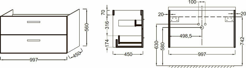 | Комплектация | 2 выдвижных ящика; раковина не входит в комплектацию |