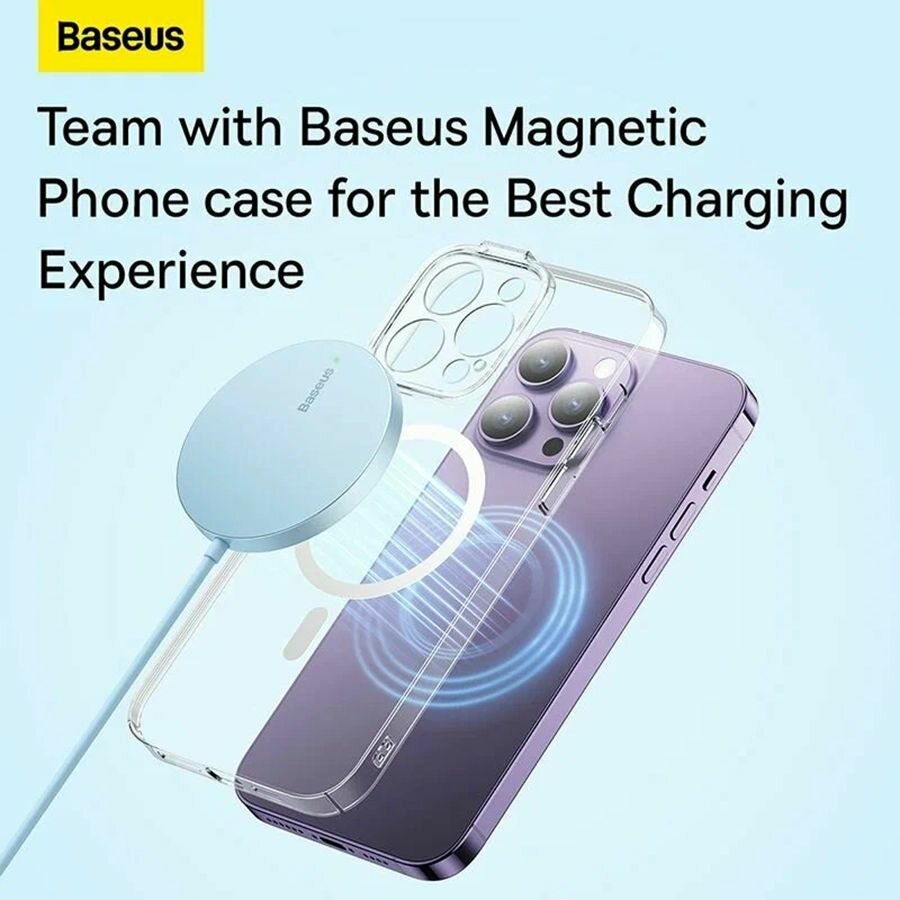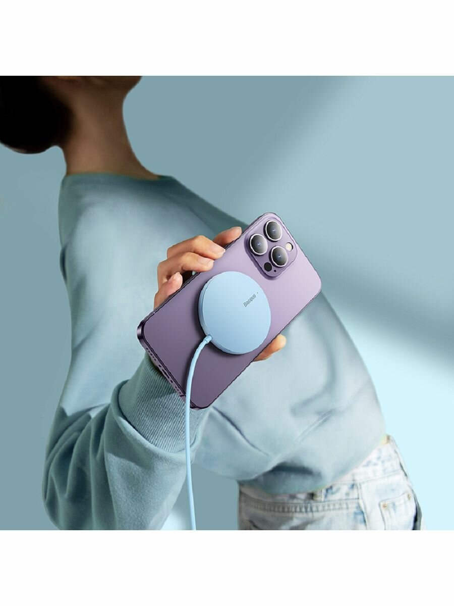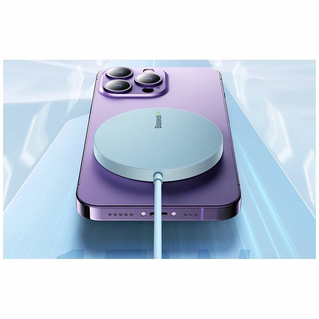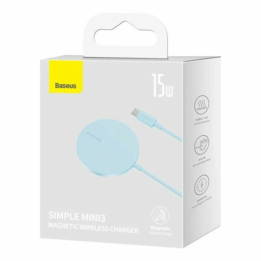 Купить Беспроводное зарядное устройство Baseus Simple Mini3 Magnetic Wireless Charger 15W (CCJJ040303) голубое