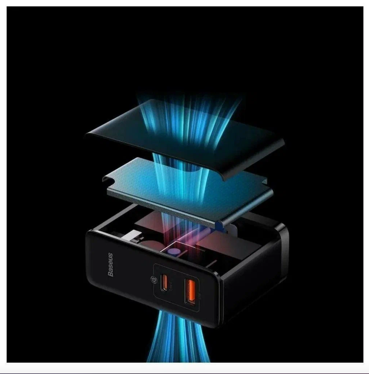 Сетевой адаптер Baseus GaN5 Pro C+U 100W Чёрный (+ кабель Type-C 1м) CCGP090201