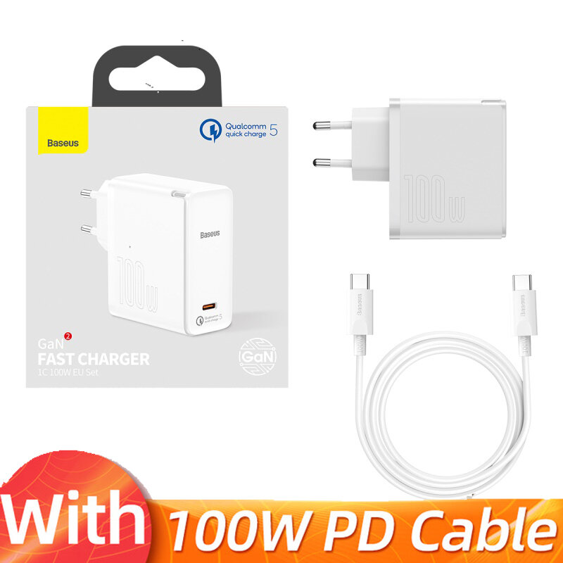 Сетевое зарядное устройство/Быстрая зарядка Baseus GaN5 Pro Fast Charger C+U 100W EU White (Cable Type-C to Type-C 100W(20V/5A) CCGP090202