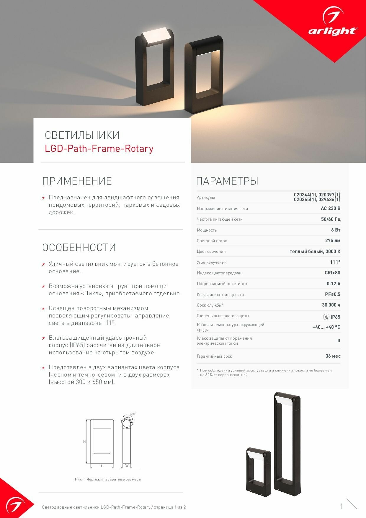 020344(1) Светильник LGD-PATH-FRAME-ROTARY-H300-6W Warm3000 (BK, 111 deg, 230V) (Arlight, IP65 Металл, 3 года)