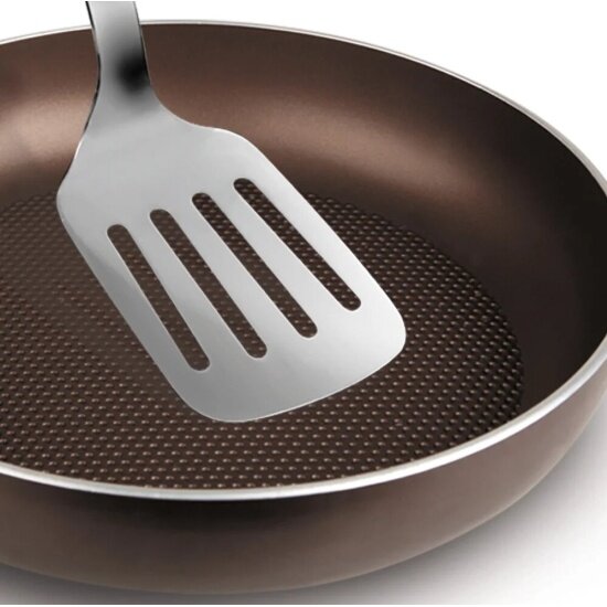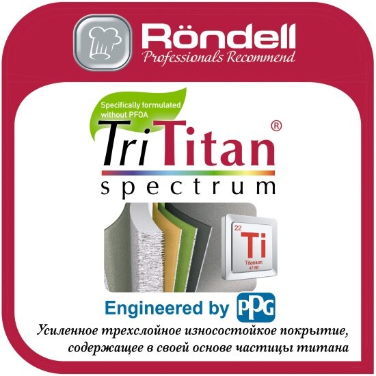 | Дополнительная информация | материал ручки нержавеющая сталь с силиконовыми вставками; марка антипригарного покрытия TriTitan Spectrum; внутреннее дно с микроячейками; возможно использование металлических лопаток; тип крепления ручки клепочное |