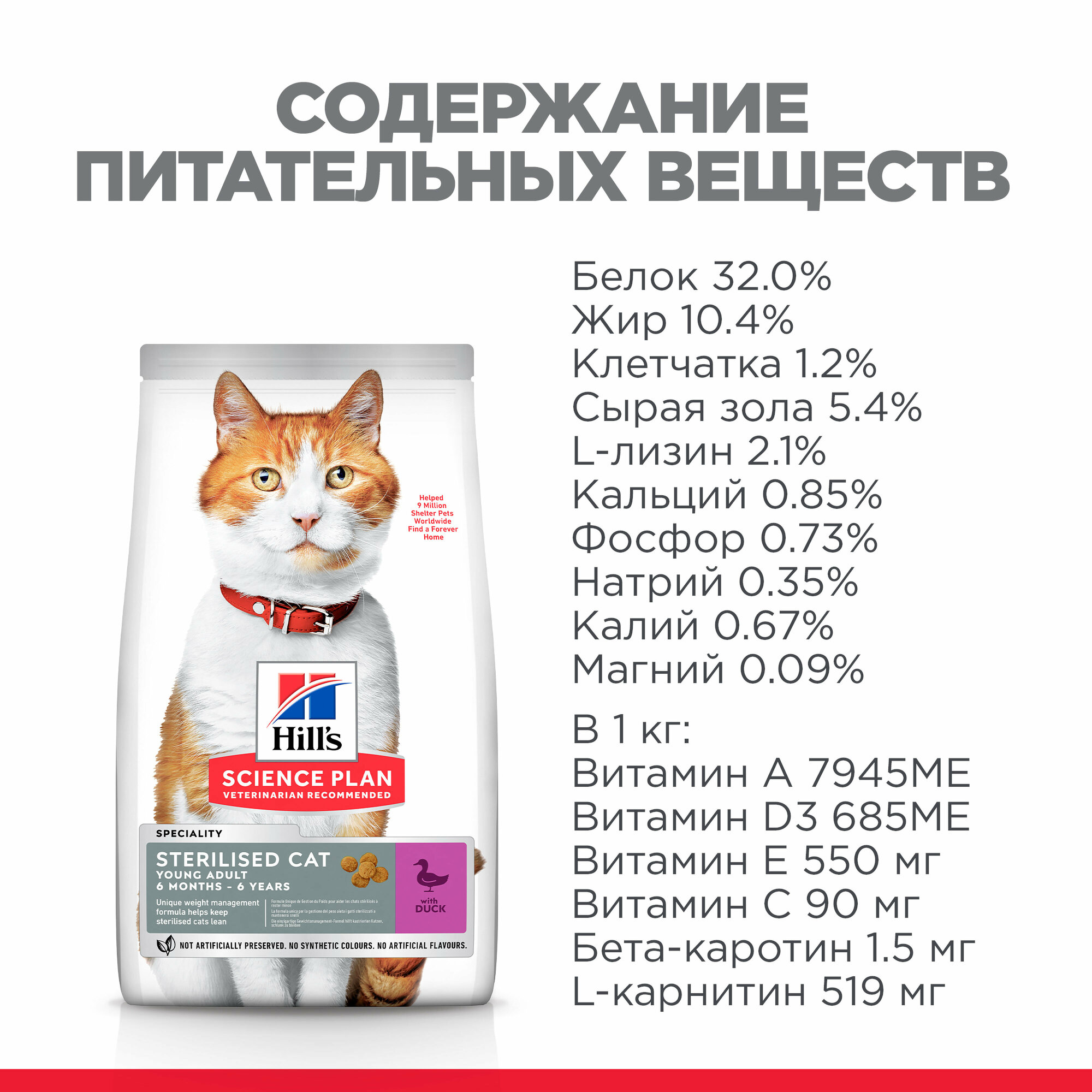 Корм Hill's Science Plan Sterilised Cat для стерилизованных кошек от 6 мес. до 6 лет, утка, 10 кг