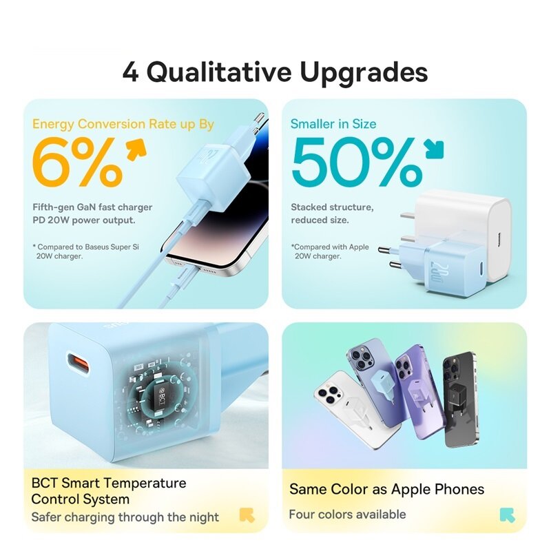 СохранитьСетевое зарядное устройство Baseus GaN5 Fast Charger(mini) 1C 20W Galaxy Blue интересное: