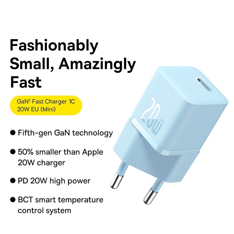 Baseus OS GaN5 Fast Charger Mini 1C 20W EU Blue CCGN050103