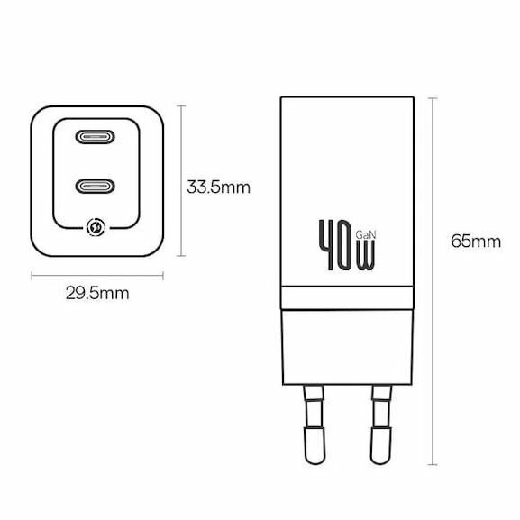 Сетевое зарядное устройство Baseus 40W GaN5 Pro 2xUSB-C, быстрая зарядка (CCGP180101) черный