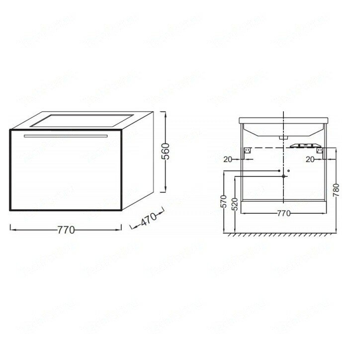 | Комплектация | 1 выдвижной ящик; без раковины и смесителя |