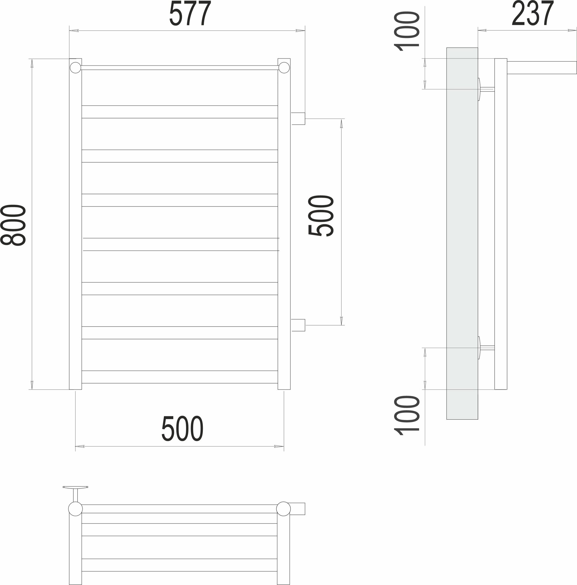 Хендрикс с боковым подключением полотенцесушитель TERMINUS (577 мм / 800 мм / 500 мм)