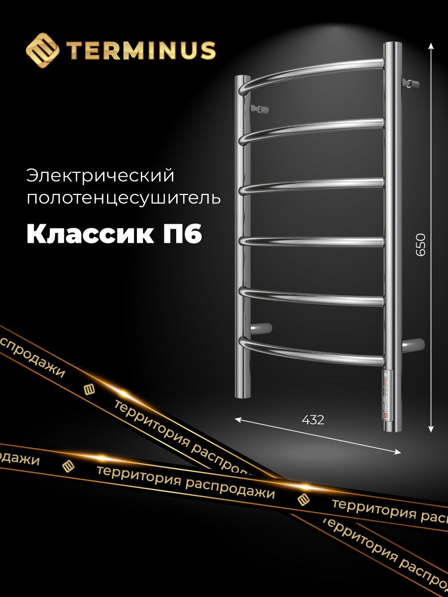 Купить Полотенцесушитель электрический TERMINUS (Терминус) Классик П6 400х650 мм, нержавеющая сталь, гарантия 5 лет