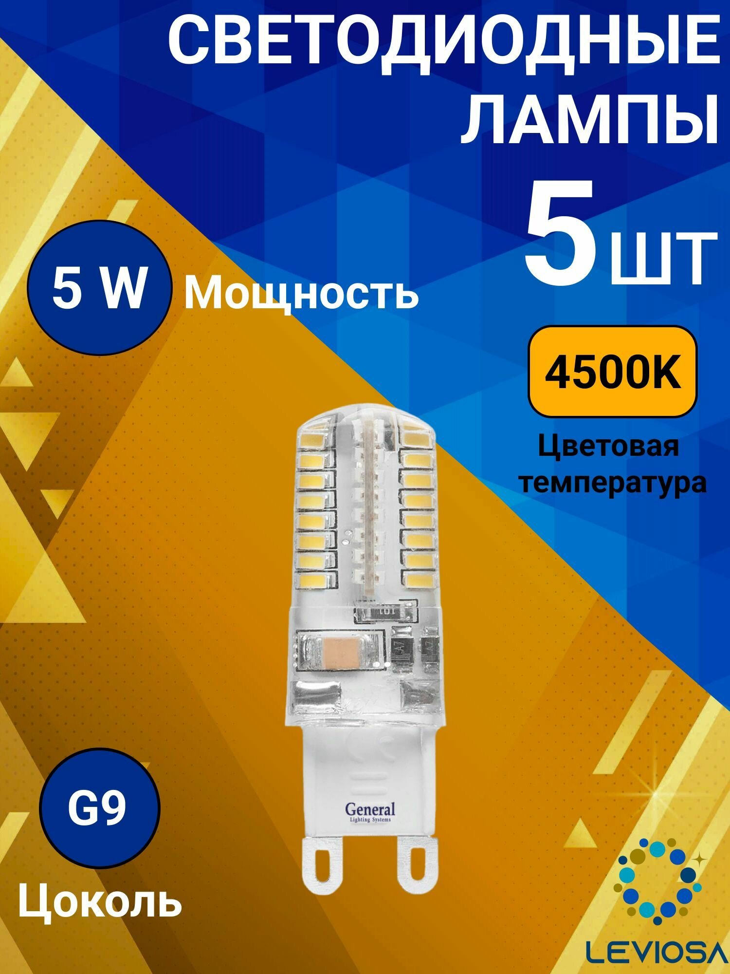 Купить Светодиодные лампы, General, Комплект из 5 шт., Мощность 5 Вт, Цоколь G9, Дневной свет