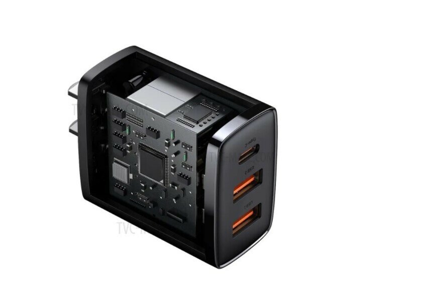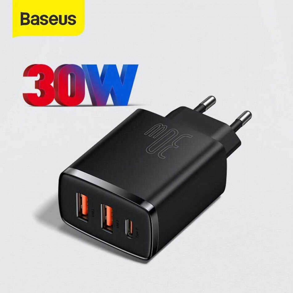 Зарядное устройство Baseus Compact Quick Charger 2*USB+USB-C, 3A, 30W, черный