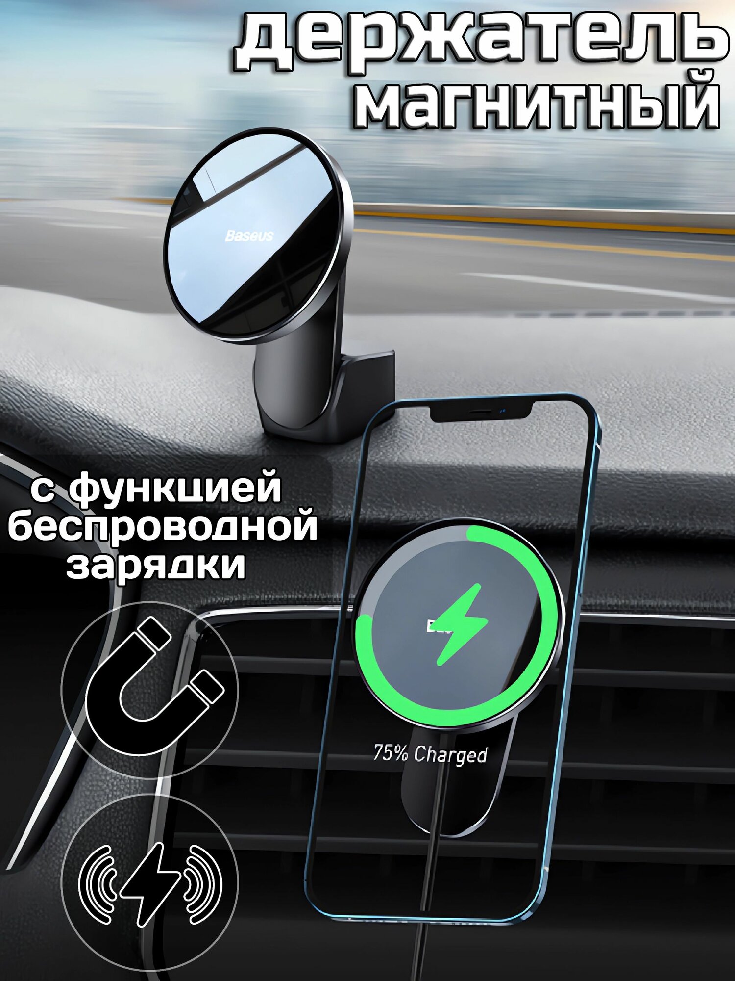 Держатель для телефона в автомобиль магнитный с беспроводной зарядкой 15W на решетку воздуховода и панель Baseus Big Energy Черный MagSafe для Айфон