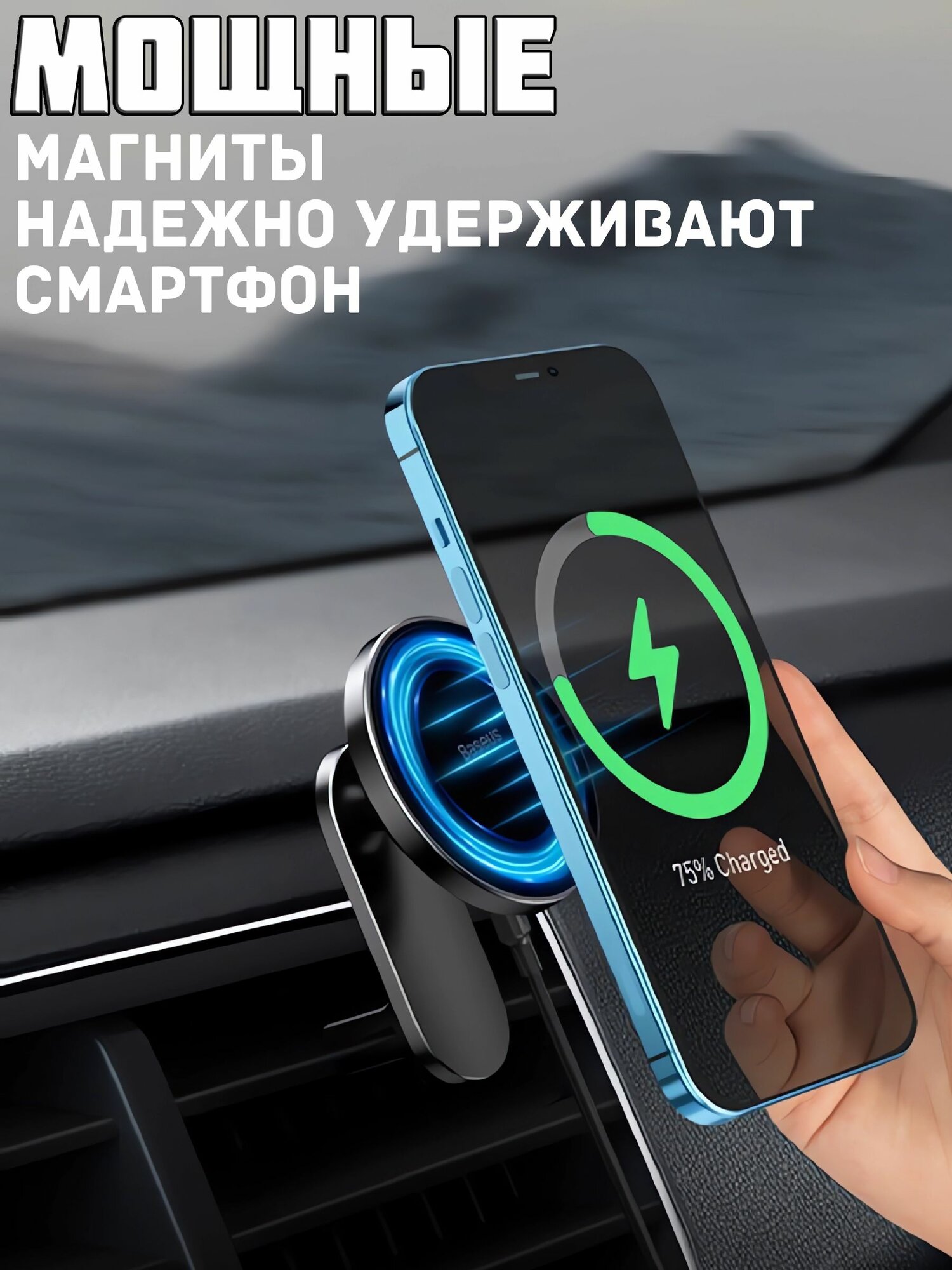 | Плюсы: | На киа рио компактно сидит, магнит хорошо держит мой iPhone 12 и заряжает |