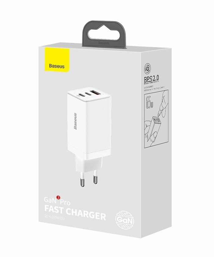 Сетевое зарядное устройство/Быстрая зарядка Baseus GaN3 Pro Quick Charger 2*C+U 65W EU White CCGP050102
