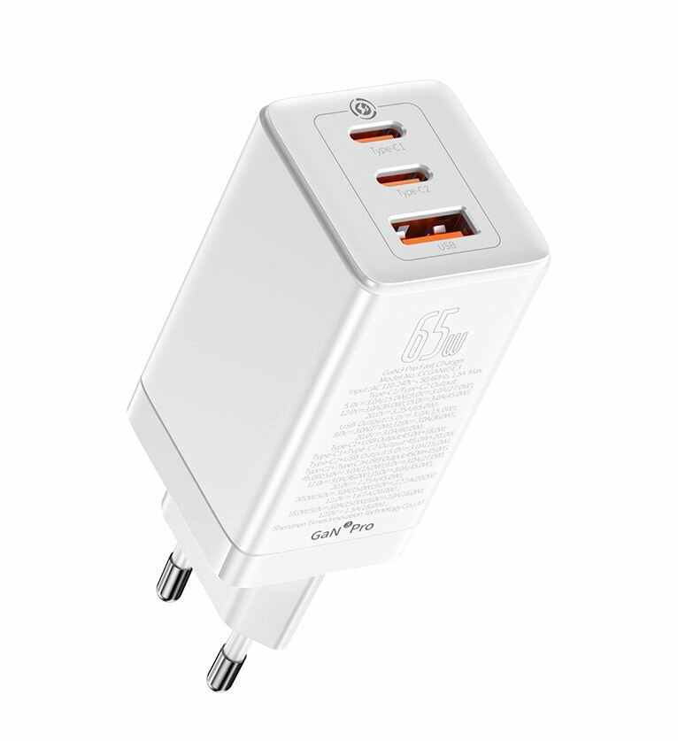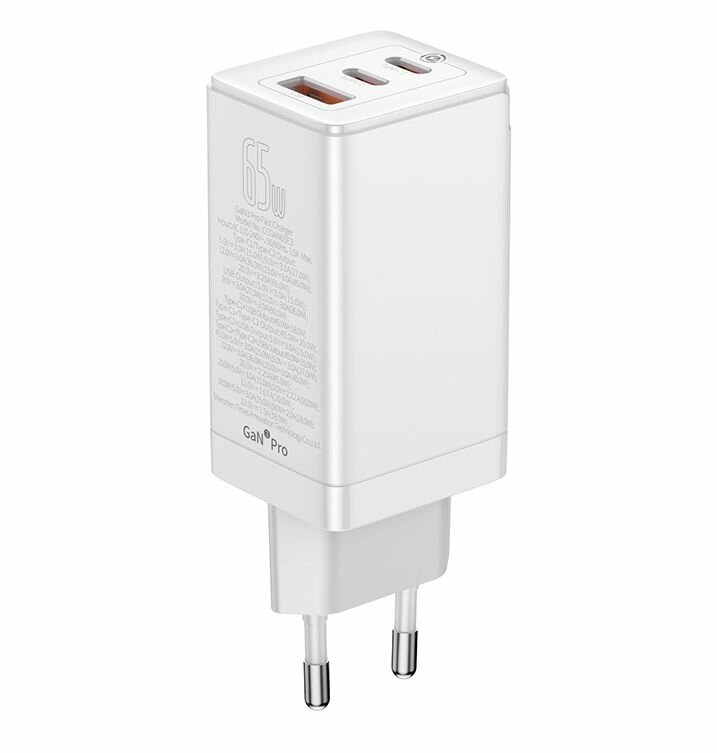 Сетевое зарядное устройство Baseus GaN3 Pro Fast Charger 2C+U 65W EU White (CCGP050102)