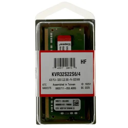 Оперативная память Kingston ValueRAM 4 ГБ DDR4 3200 МГц SODIMM CL22 KVR32S22S6/4