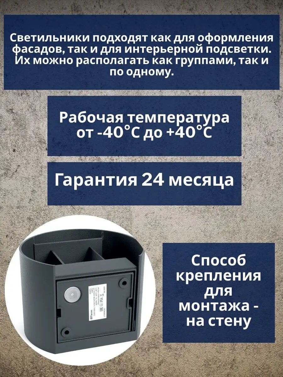Светильник светодиодный уличный ДБУ-2х3w вверх/вниз 4000К IP54 черный 11872 FERON