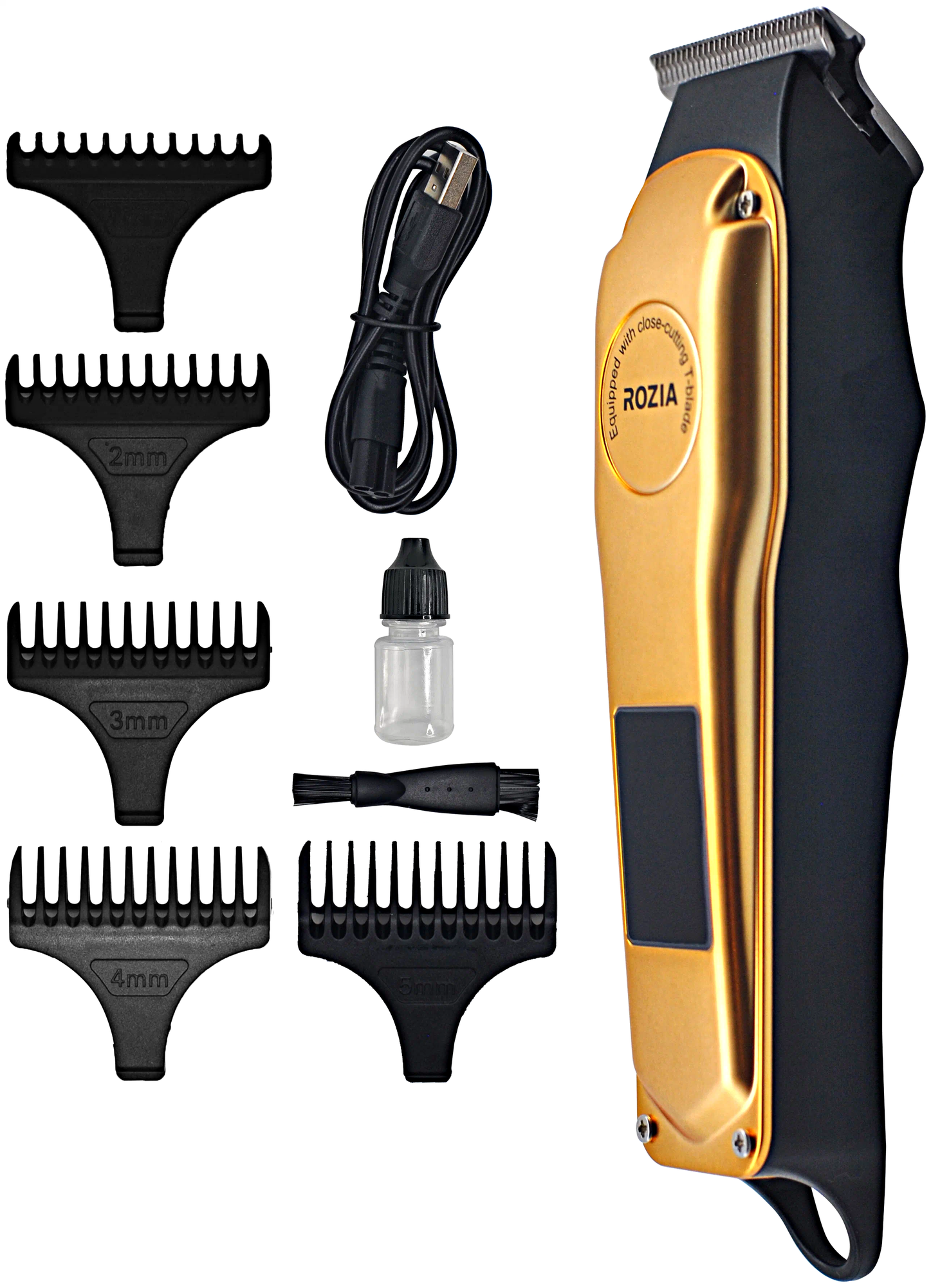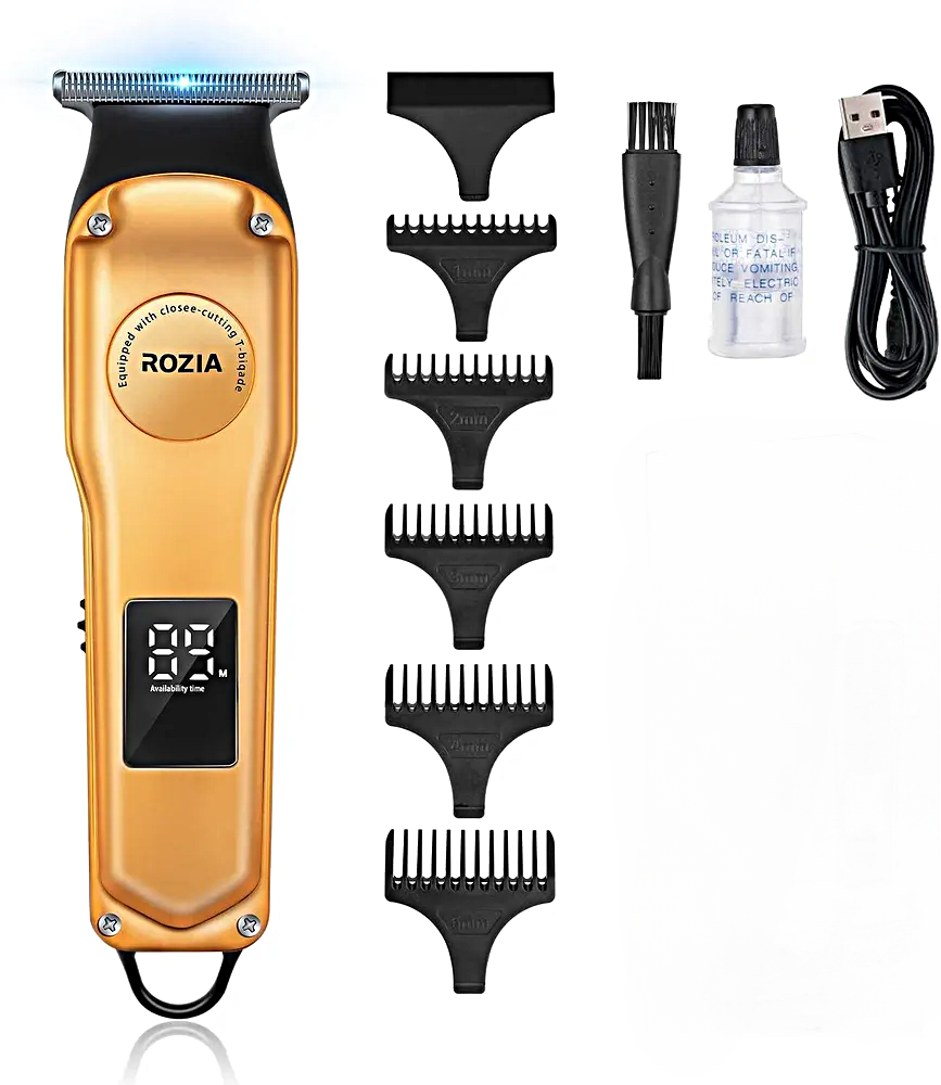 Профессиональный триммер для стрижки бороды и усов Rozia HQ281, Машинка для стрижки волос HQ281, 5 насадок, золотой