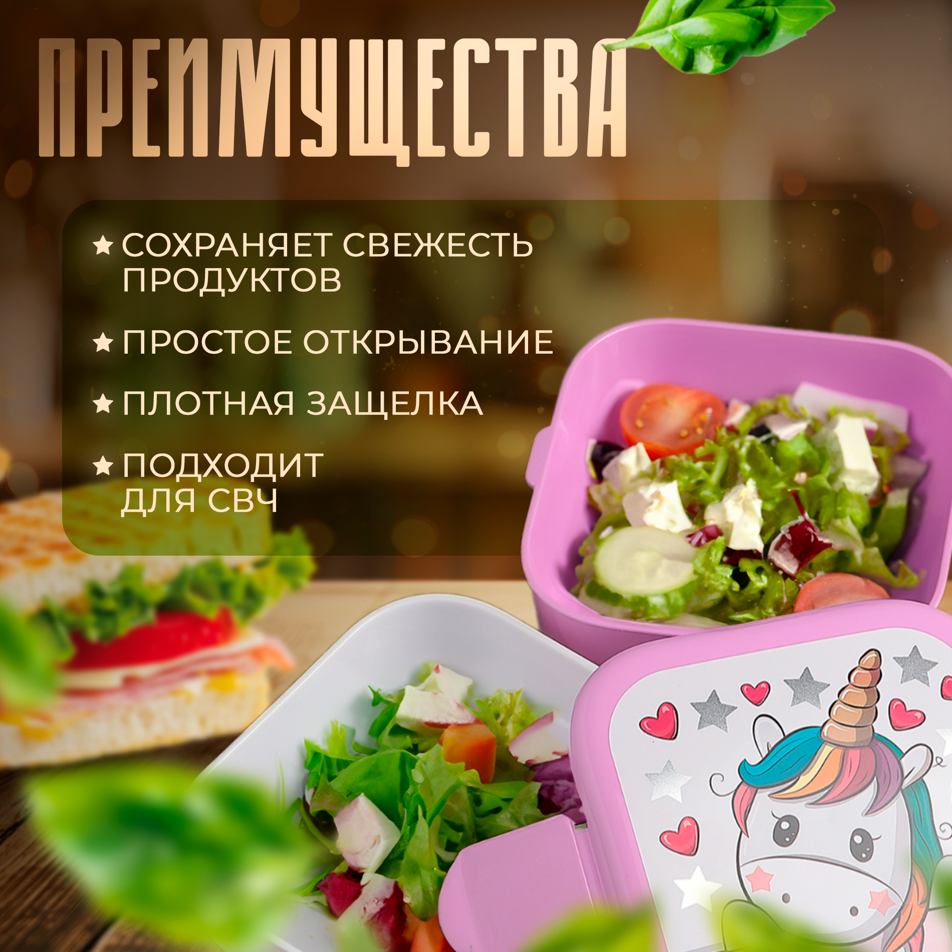 Сэндвич-боксы, контейнеры IDEA Контейнер для обеда «Единорог», 0,4+0,4 л, цвет розовый