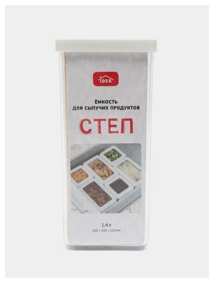 Ёмкость для Сыпучих продуктов степ 1л 10х10х14см Белый Idea М1292