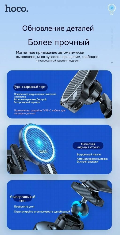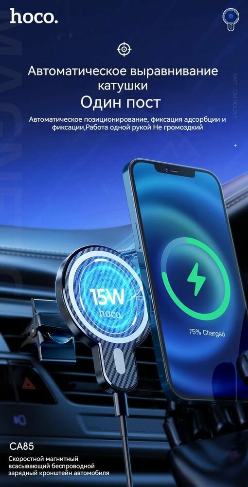 Держатель для смартфона в авто Hoco Ca85, с беспроводной зарядкой, поддержка Magsafe, 15 Вт Hoco 768 .