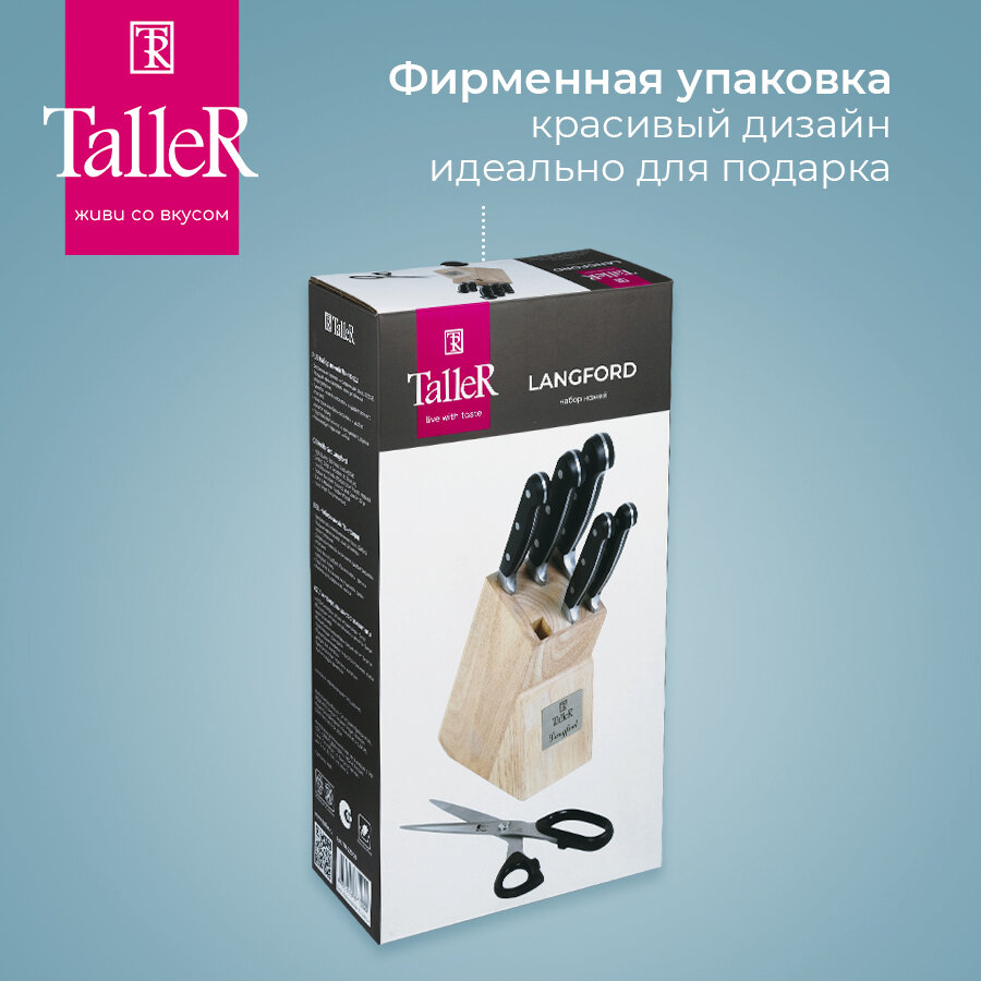 Набор кухонных ножей с ножницами Taller TR-22009 Лэнгфорд на подставке, 7 предметов