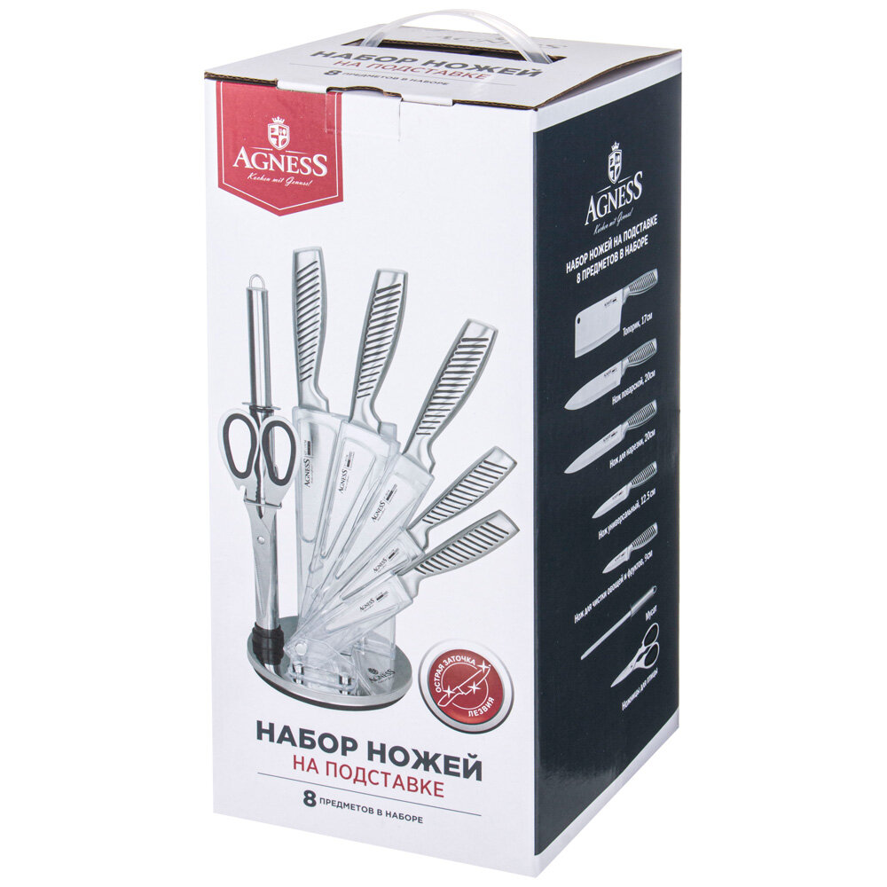 Набор ножей Agness, с ножницами и мусатом на пластиковой подставке, 8 предметов