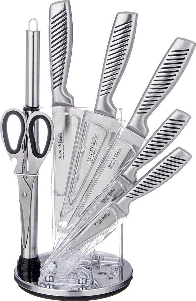 Набор ножей Agness с ножницами и мусатом на вращающейся платиковой подставке, 8 предметов
