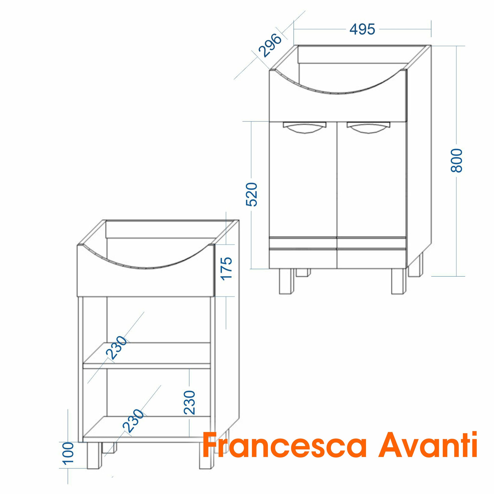 Тумба с раковиной для ванной Francesca Avanti Доминго 55 белый (2 дв, ум. Уют 55)
