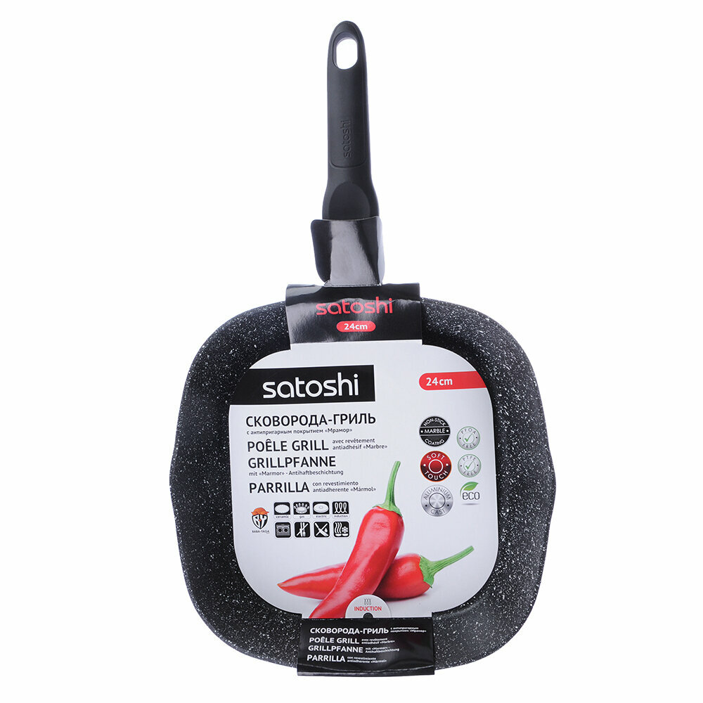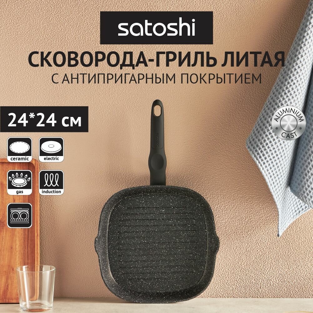 Satoshi Сковорода-гриль литой алюминий 24х24 см антипригарное каменное покрытие, индукция