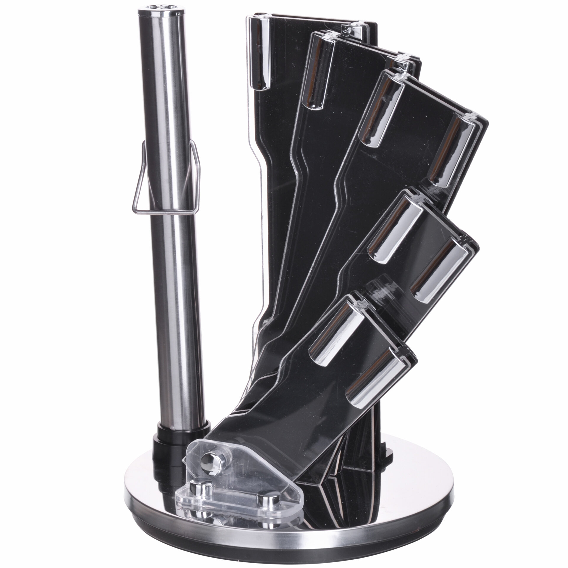 | Комплектация | нож поварской - 33 см; нож для хлеба - 32 см; нож разделочный - 31,8 см; нож универсальный - 22,4 см; нож для чистки овощей - 18,3 см; подставка - тубус из полипропилена |