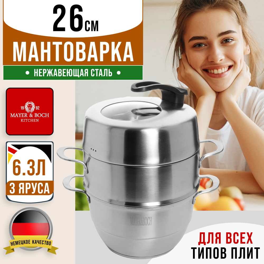 Купить MAYER&BOCH мантоварка 3 - ярусная 26 см mayer boch 31066 31066 Мантоварка 3х-ярус. 26см.6,3л. MB (х6)