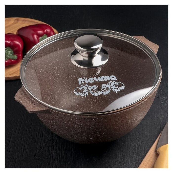 Казан Мечта Гранит Brown 5 л антипригарное покрытие стеклянная крышка