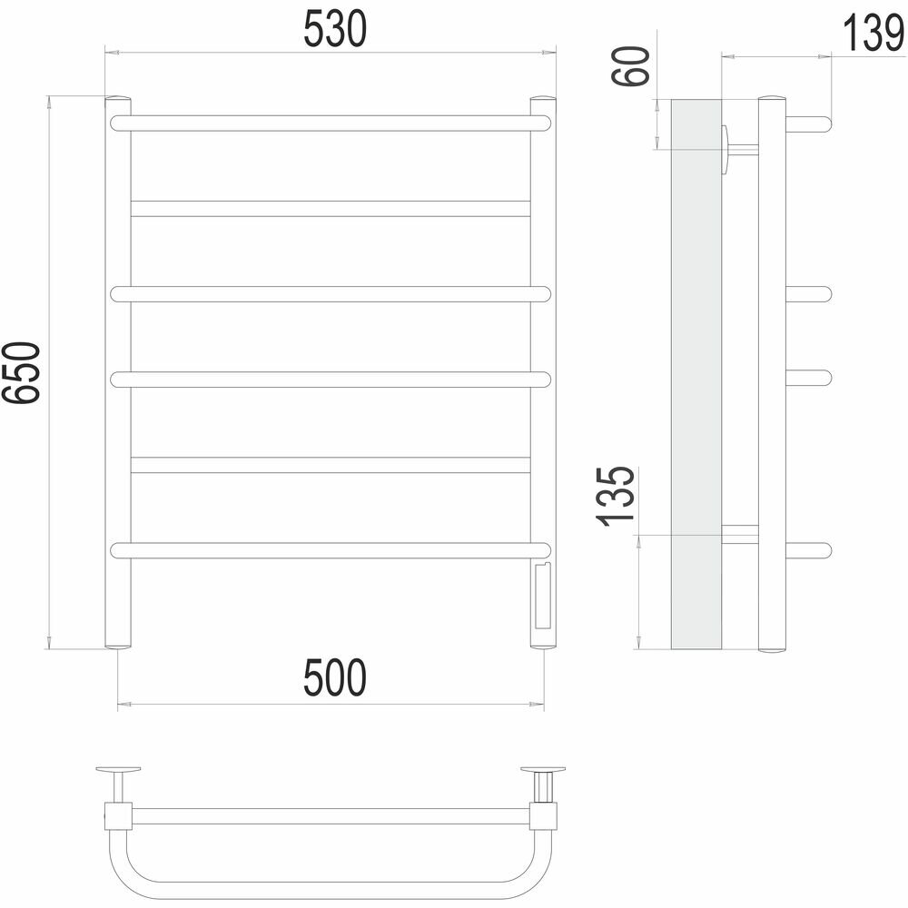 Полотенцесушитель Электрический Тругор Пэк сп 5 П 60х50 черный ВГП