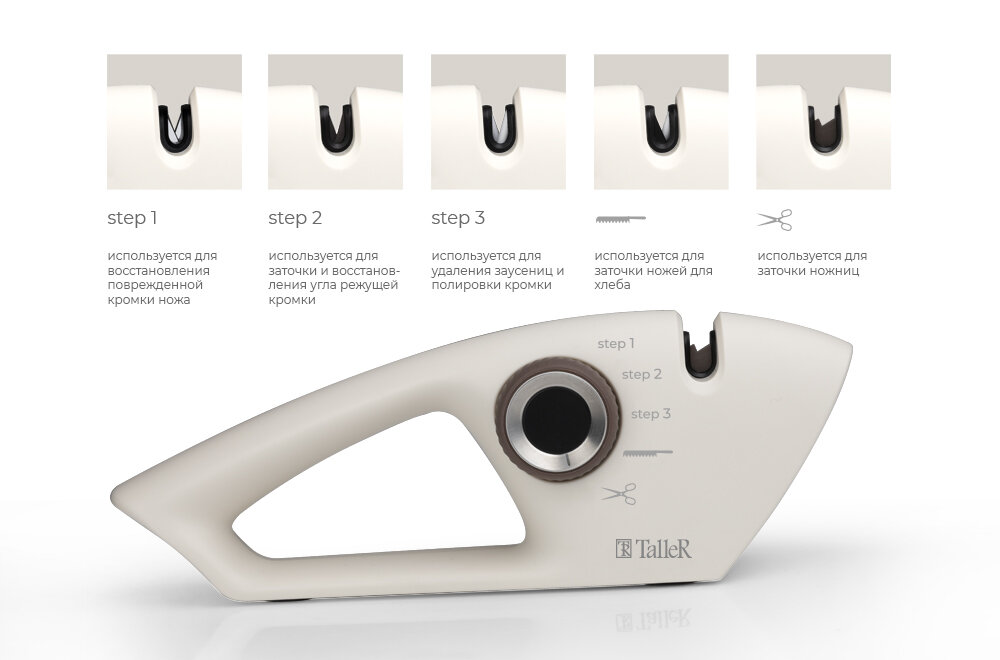 | Дополнительная информация | Механическая точилка для ножей Taller TR-2507, сталь/керамика, черный/красный |