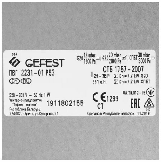 Варочная панель GEFEST ПВГ 2231-01 Р 53