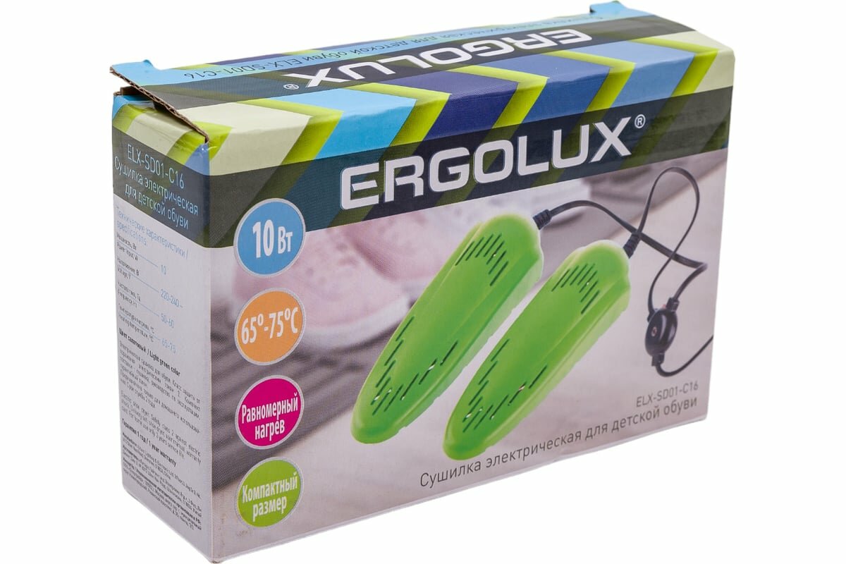 Другие товары 12 Ergolux Сушилка для обуви детская ERGOLUX ELX-SD01-C16 салатовая, индикатор 10Вт, 220-240V