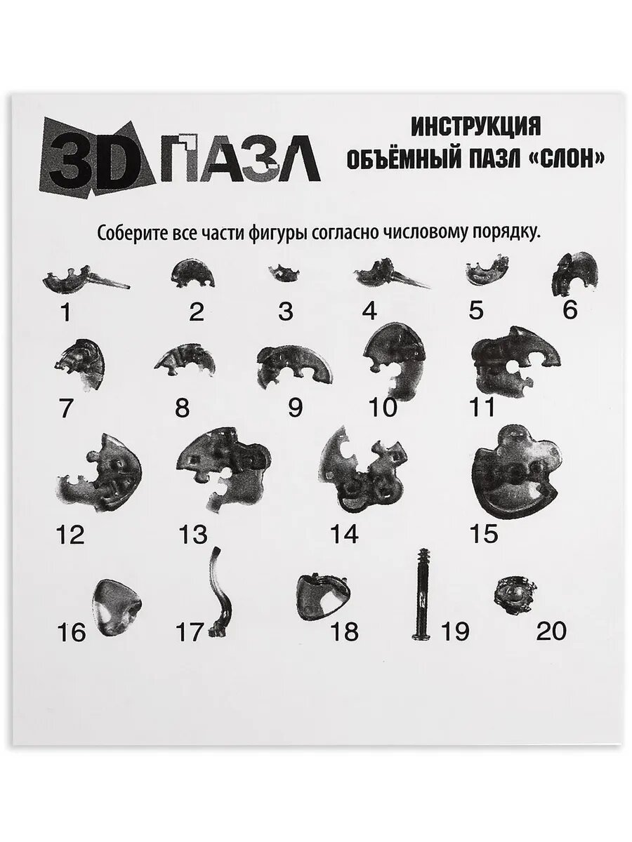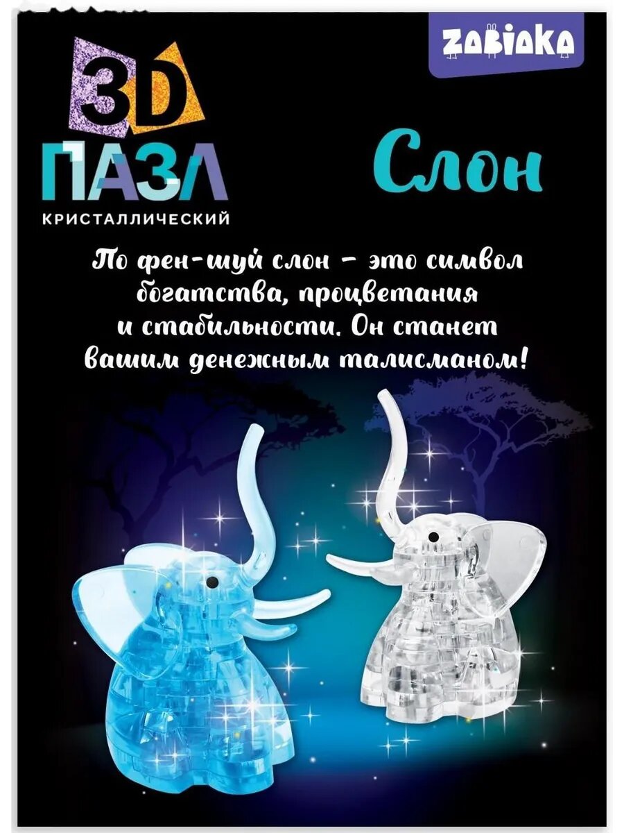 СохранитьПазл 3D кристаллический Слон 20 деталей интересное: