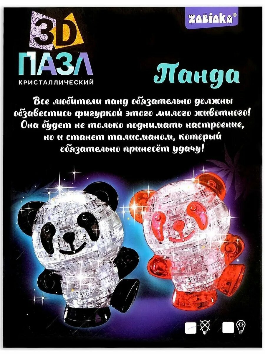 СохранитьПазл 3D кристаллический Панда 53 детали свет от батареек интересное: