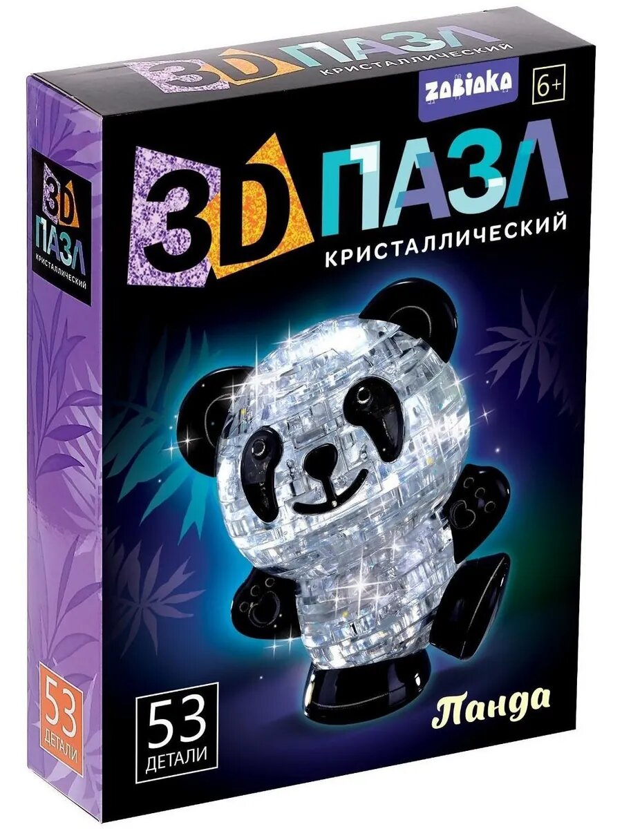 Купить Пазл 3D кристаллический Панда 53 детали свет от батареек