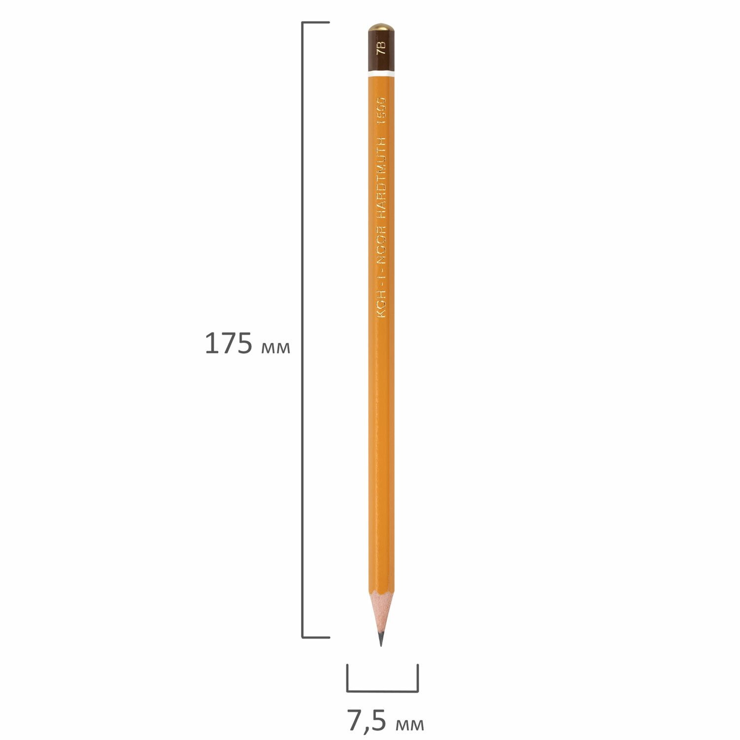 Купить 12 шт. Карандаш чернографитный KOH-I-NOOR 1500, 1 шт., 7B, корпус желтый, заточенный, 150007B01170RU