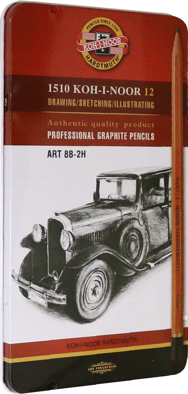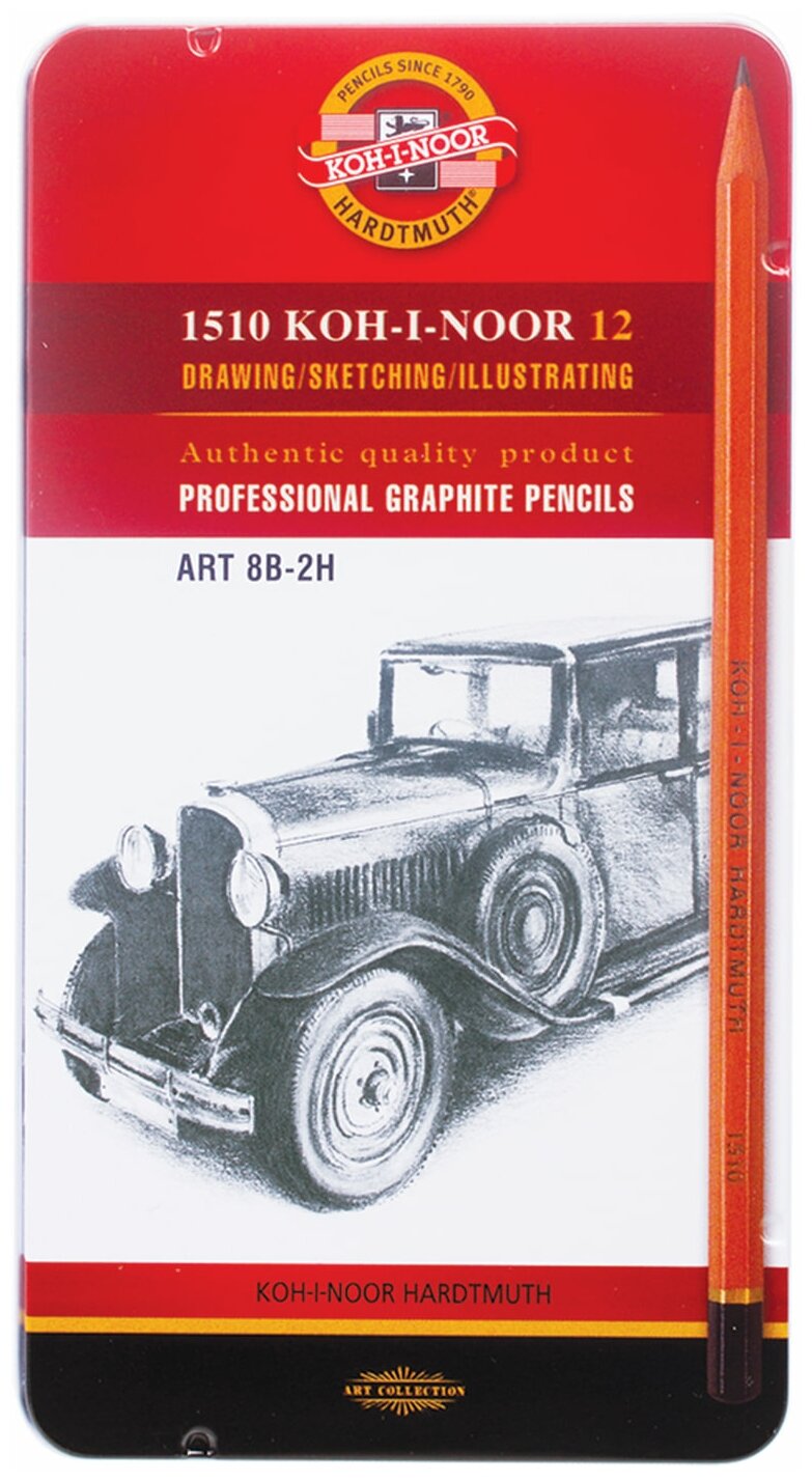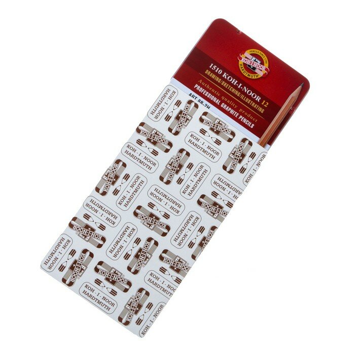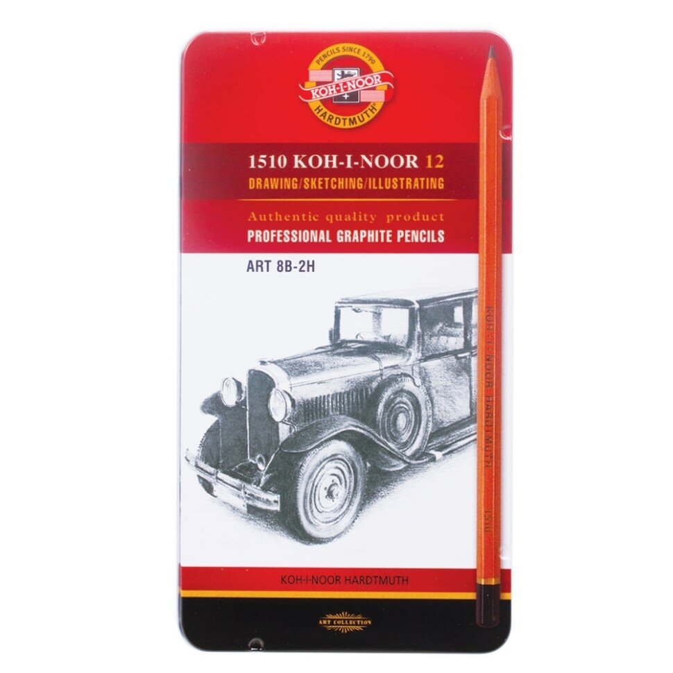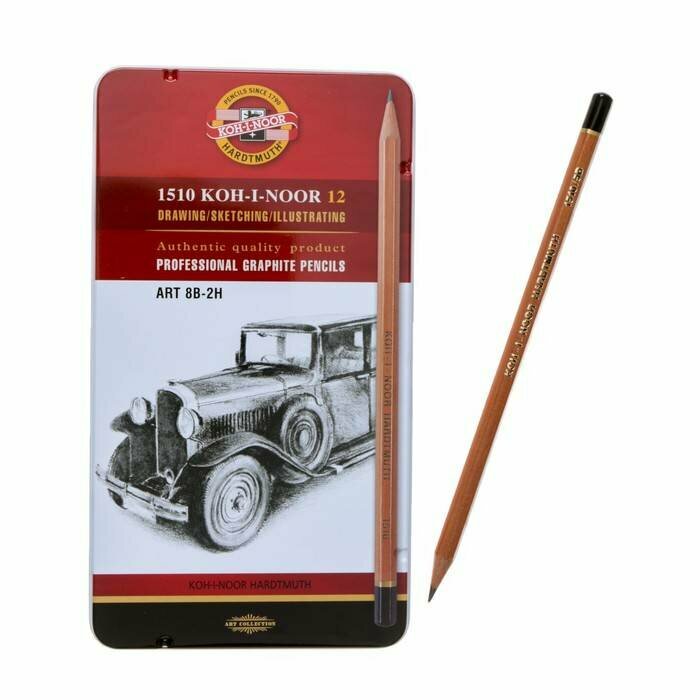 Карандаши чернографитные KOH-I-NOOR, набор 12 шт., Art, 8В-2H, без резинки, металлическая коробка, 1512N12001PL
