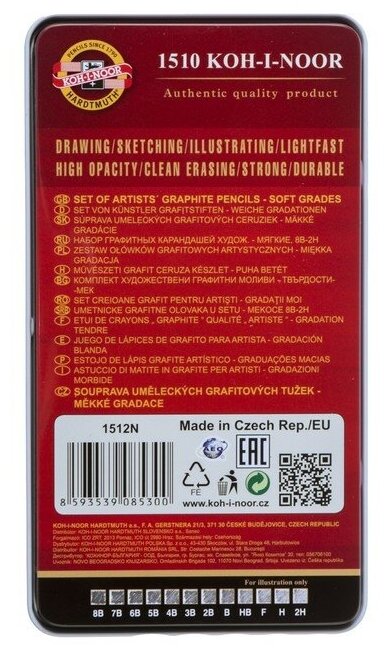 Набор карандашей чернографитных разной твердости 12 штук Koh-i-Noor 1512N Art, 8B-2H, в металлическо .