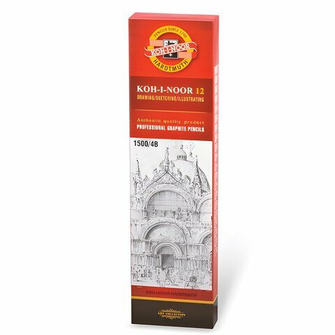 Карандаш чернографитный KOH-I-NOOR 1500, 1 шт., 4B, корпус желтый, заточенный, 150004B01170RU - 12 шт.