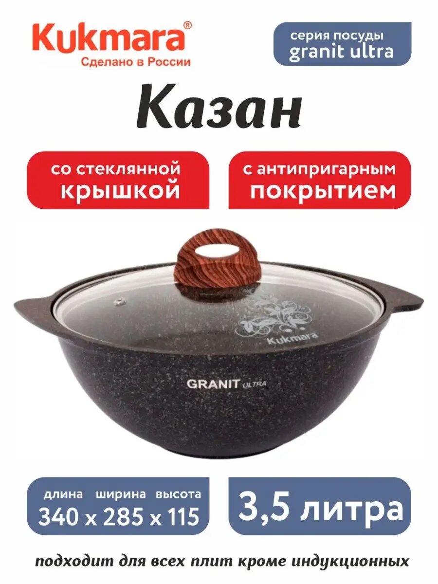 Казан KUKMARA Granit ultra кгг47а, крышка стекло с пл. петлей