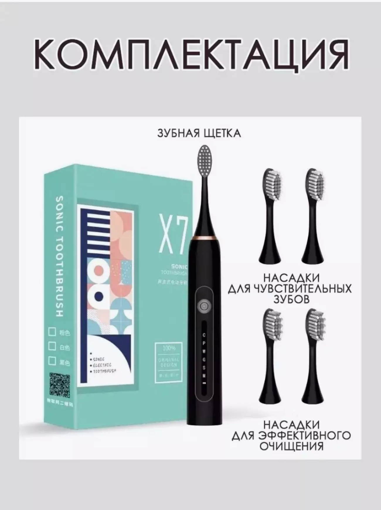 Электрическая зубная щетка SONIC TOOTHBRUSH X7 (4 сменные насадки), белая