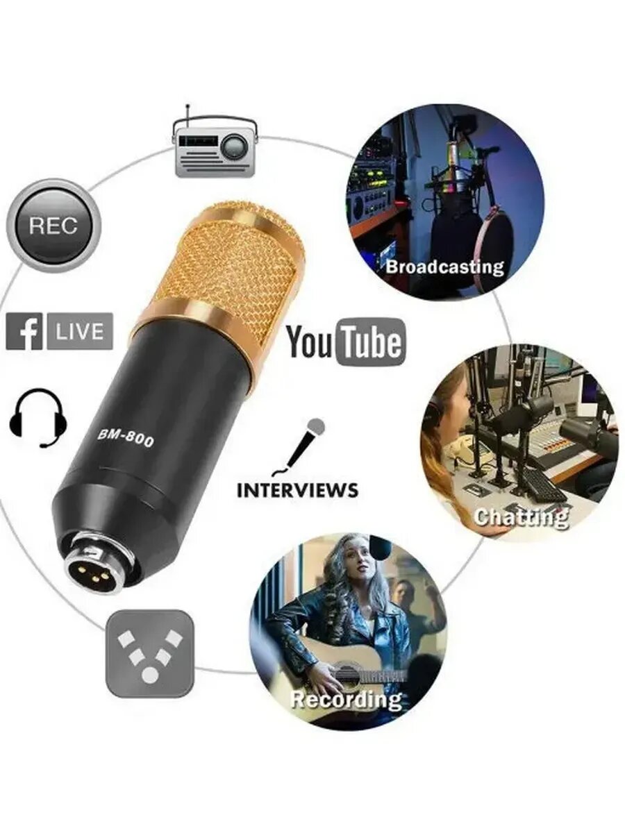 Микрофон / Конденсаторный микрофон / Микрофон для ПК / Набор studio BM800 JBH Золото с черным
