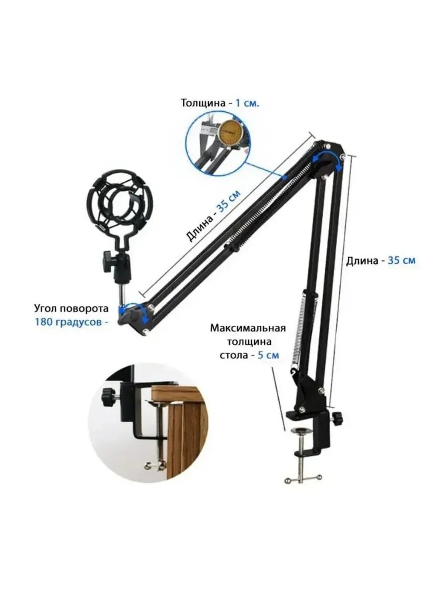 Студийный набор для звукозаписи Конденсаторный микрофон BM800 JBH , Поп-фильтр, пантограф (белый с серебром)