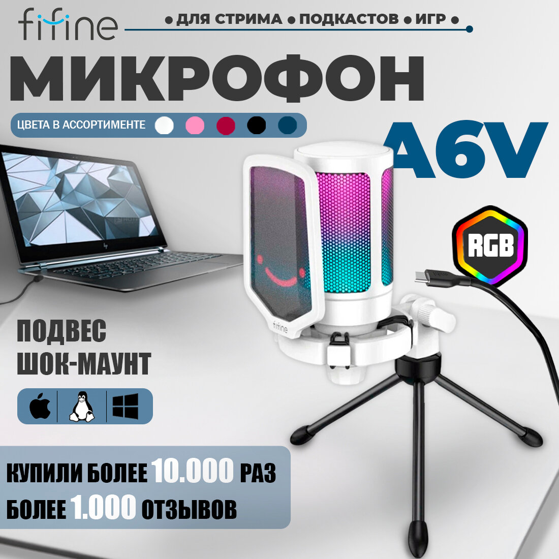 Конденсаторный USB Микрофон Fifine A6V с RGB-подсветкой (White)