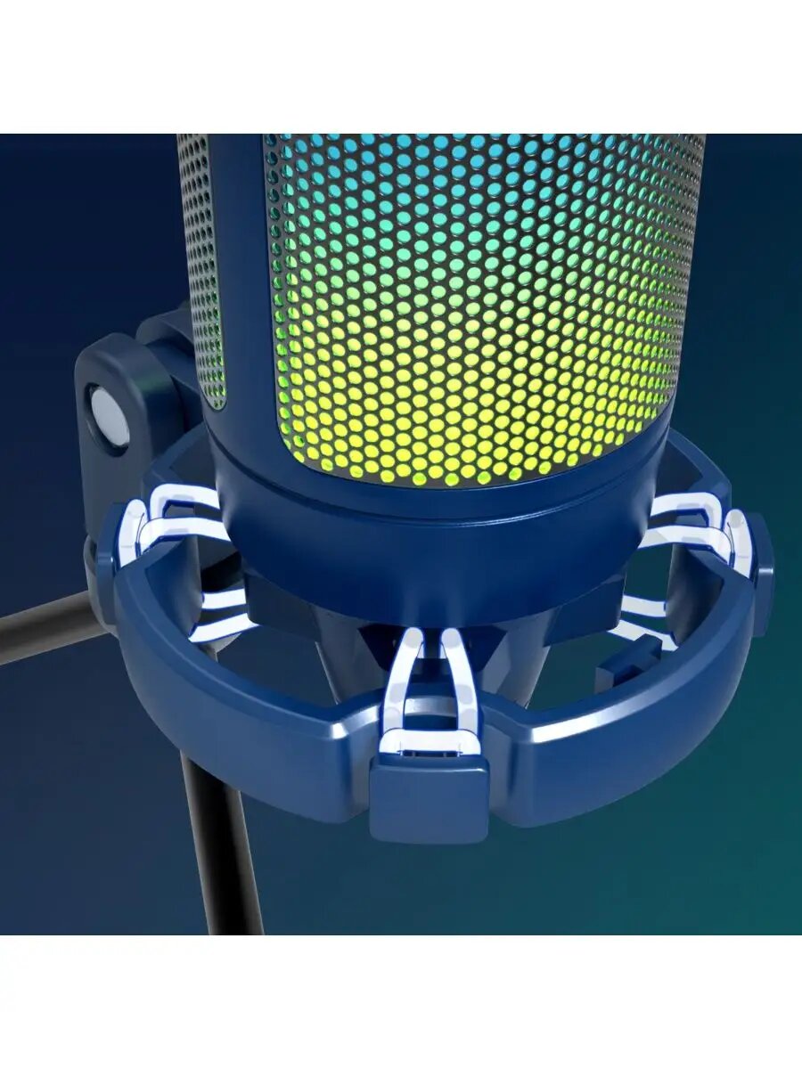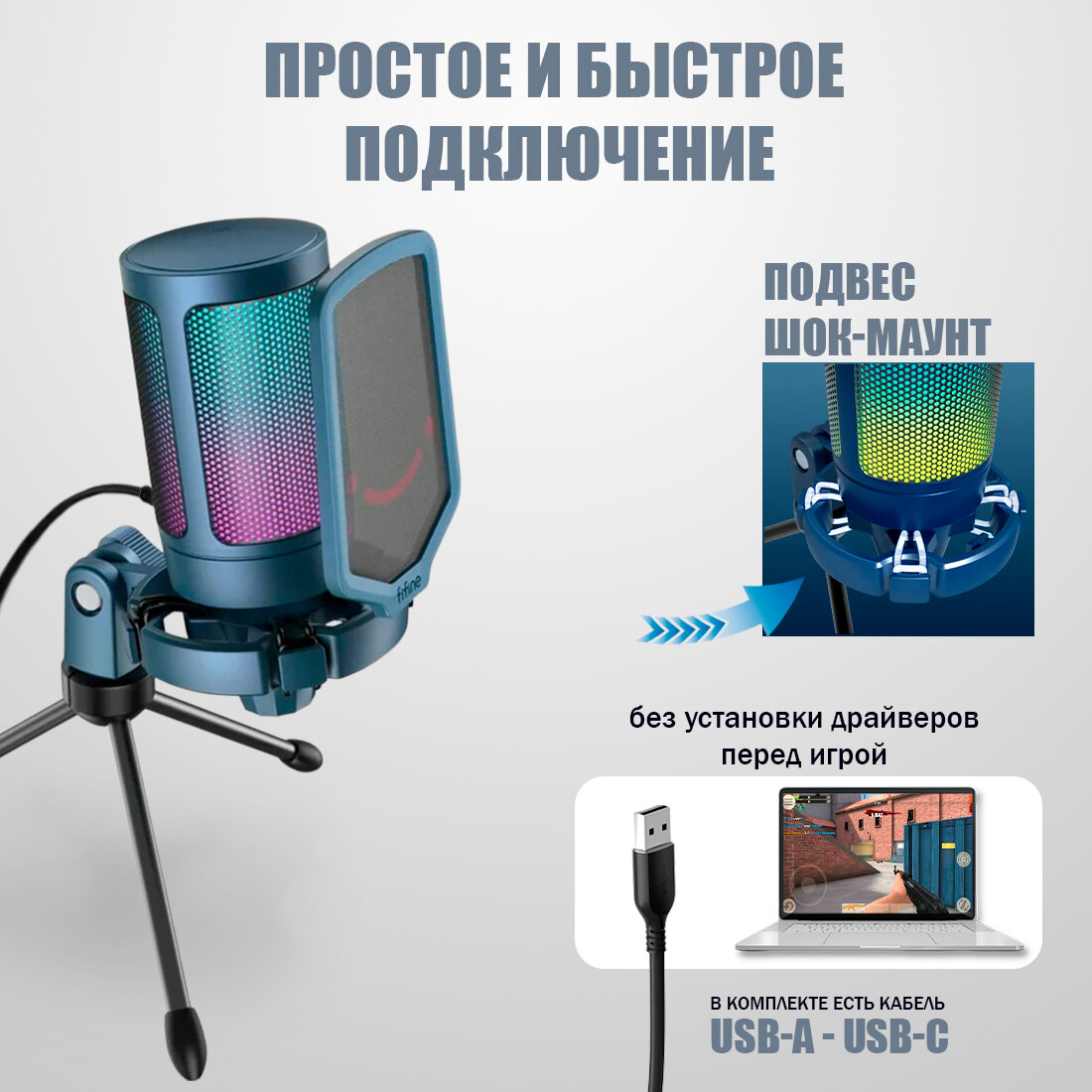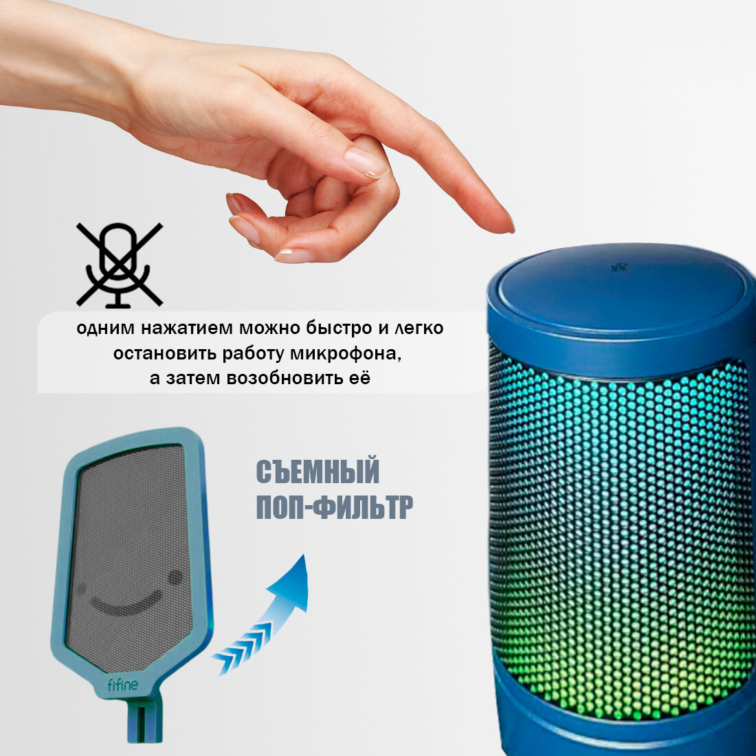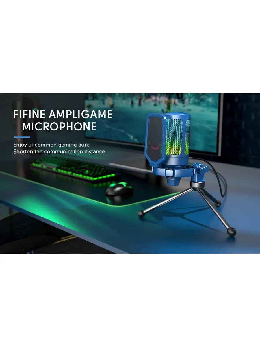 Конденсаторный USB Микрофон Fifine A6VB Ampligame с RGB-подсветкой (компьютерный, игровой, для стримов, для конференций, Blue)
